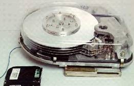 Ausgebautes K5502-Festplattenlaufwerk des K1600 Systems. Links zum Größenvergleich eine 3,5-Zoll-Festplatte (welche in ihrer Größe selbst schon wieder überholt ist) |