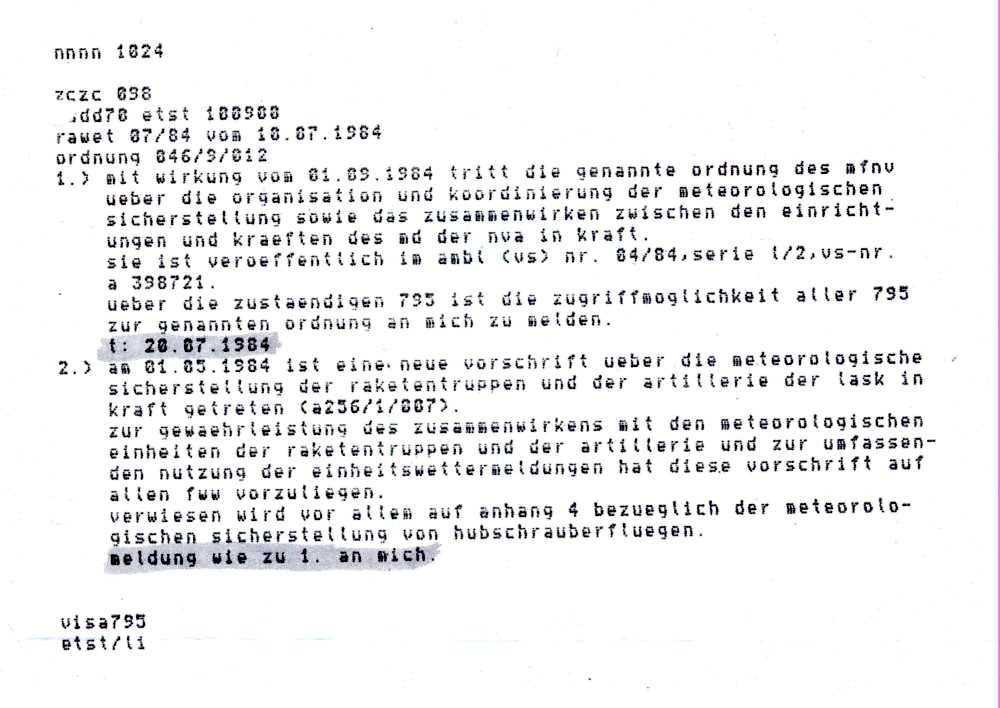 und Kräften des Meteorologischen Dienstes der NVA wird erlassen und tritt am 01.09.1984 in Kraft.